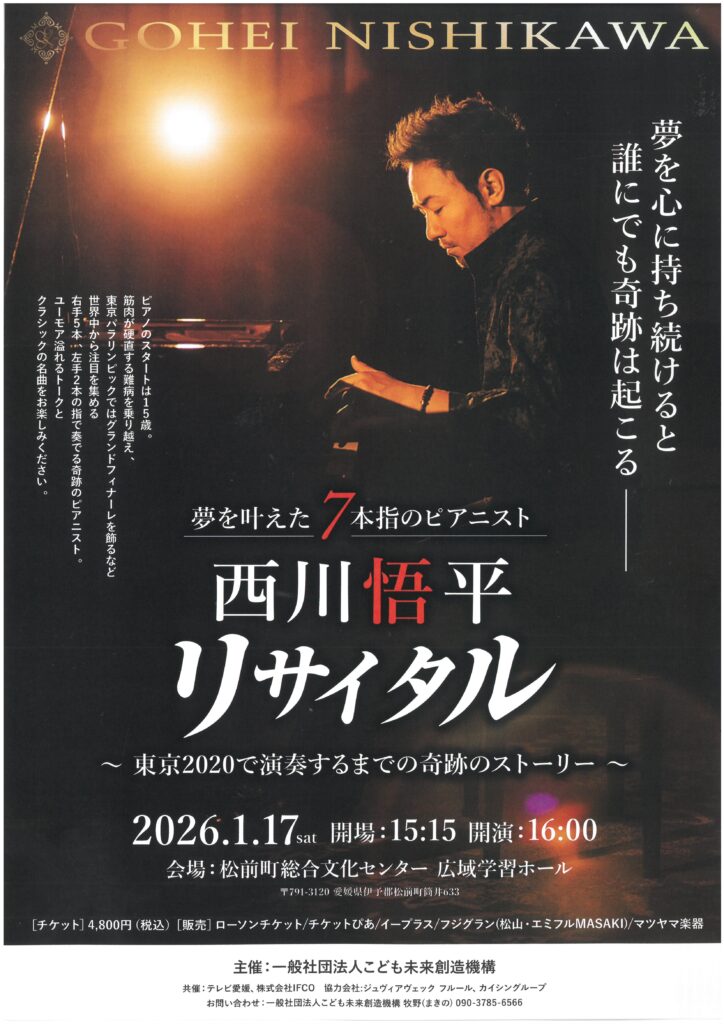 ♪ 夢を叶えた7本指のピアニスト 西川 悟平 リサイタル